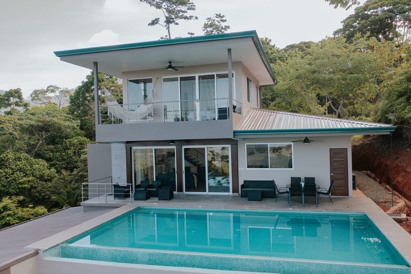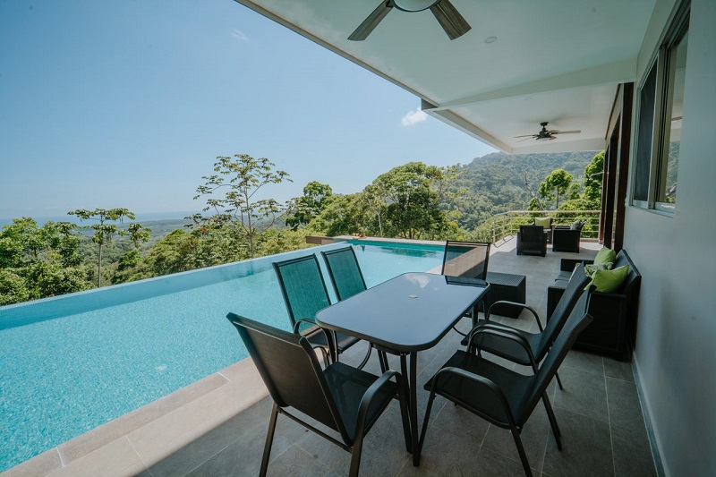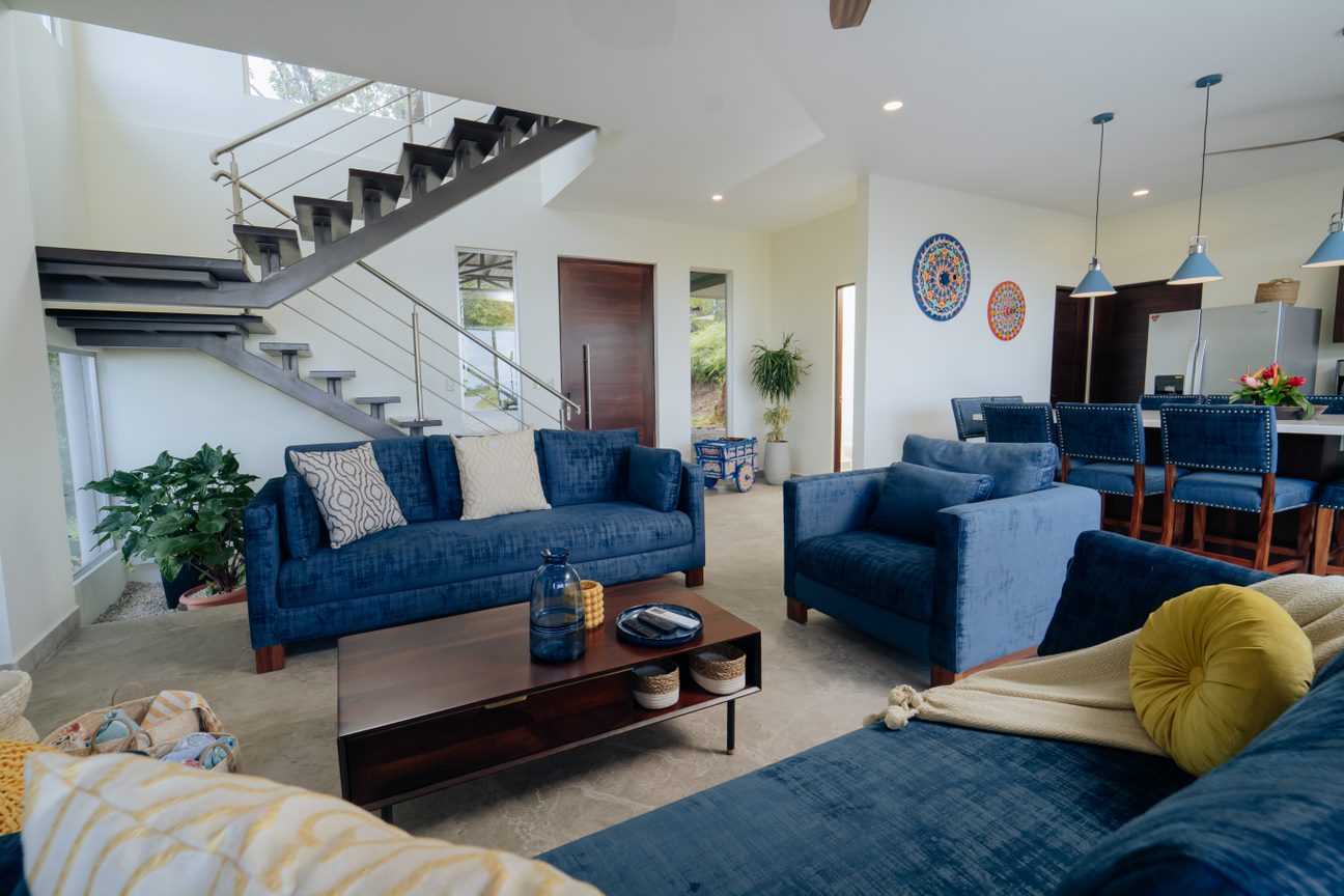 - The master bedroom on the top floor has a king-size bed, full bathroom, A/C, and a private balcony sitting area with ocean views.