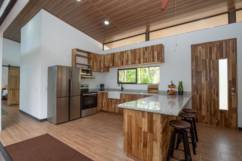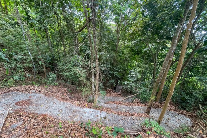 - Large, covered terrace overlooking the tropical forest with a partial ocean view.