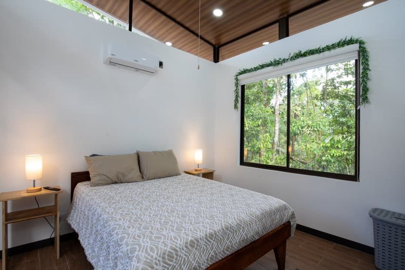 - Two bedrooms, each with a queen-size bed, A/C, and private bathroom.