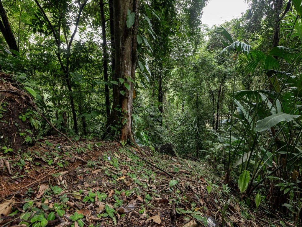 Lot immersed in the rain forest adjacent to the protected area of the Portalón River, with a small creek and a small cascaded, it has a large homesite and another one smaller, it has a private hiking path that leads directly to the swimming holes of the La Cazuela Waterfall, moderate topography.